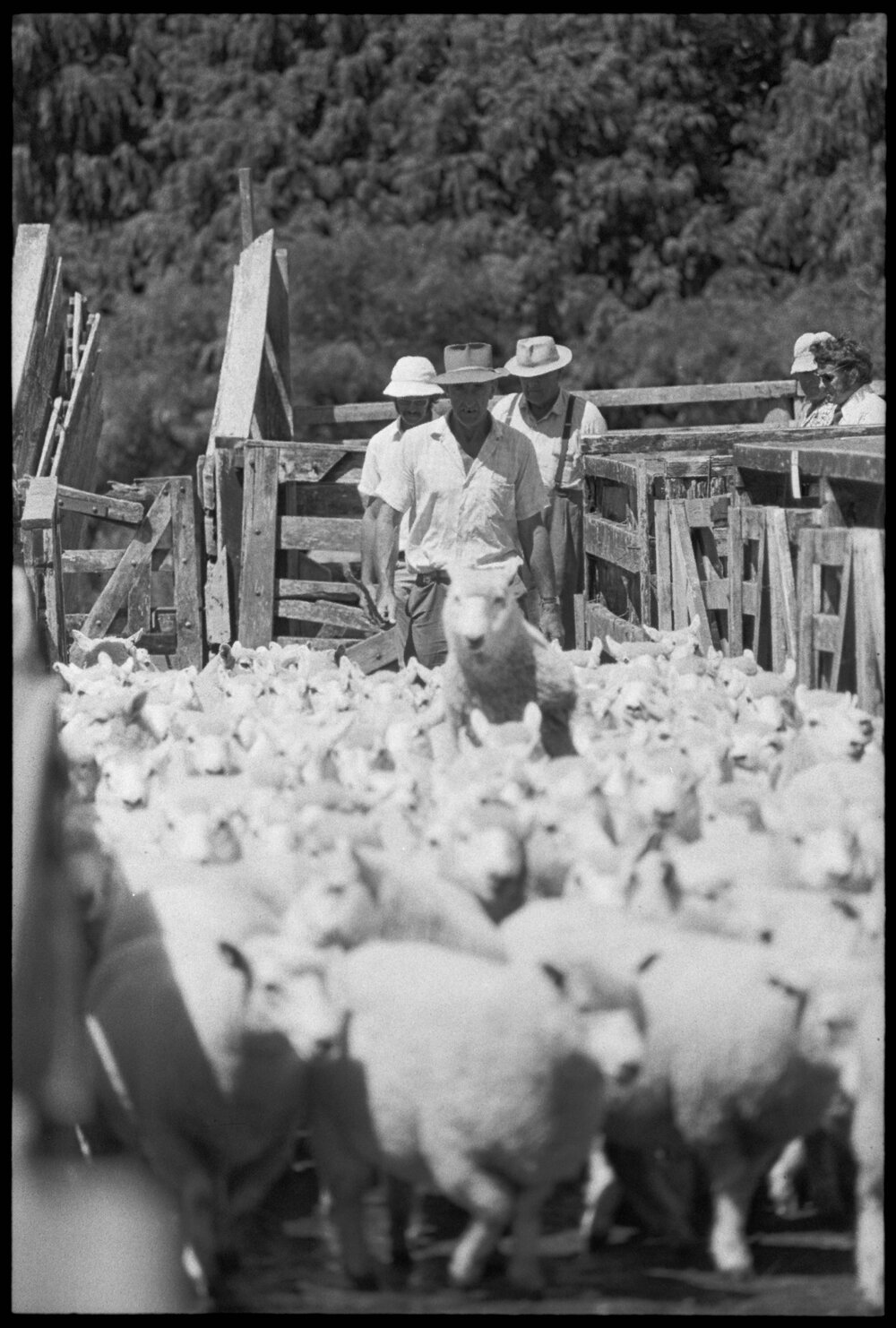 Date25 January 1975Reference Numberphoto gcc-32213DescriptionSheep on offer in the yards at the Tauranga Ewe Fair held at Judea. Published 25 January 1975.FormatNegativePhysical Description35mm black-and-white negative (4/6)Photographer/CreatorBay of Plenty Times