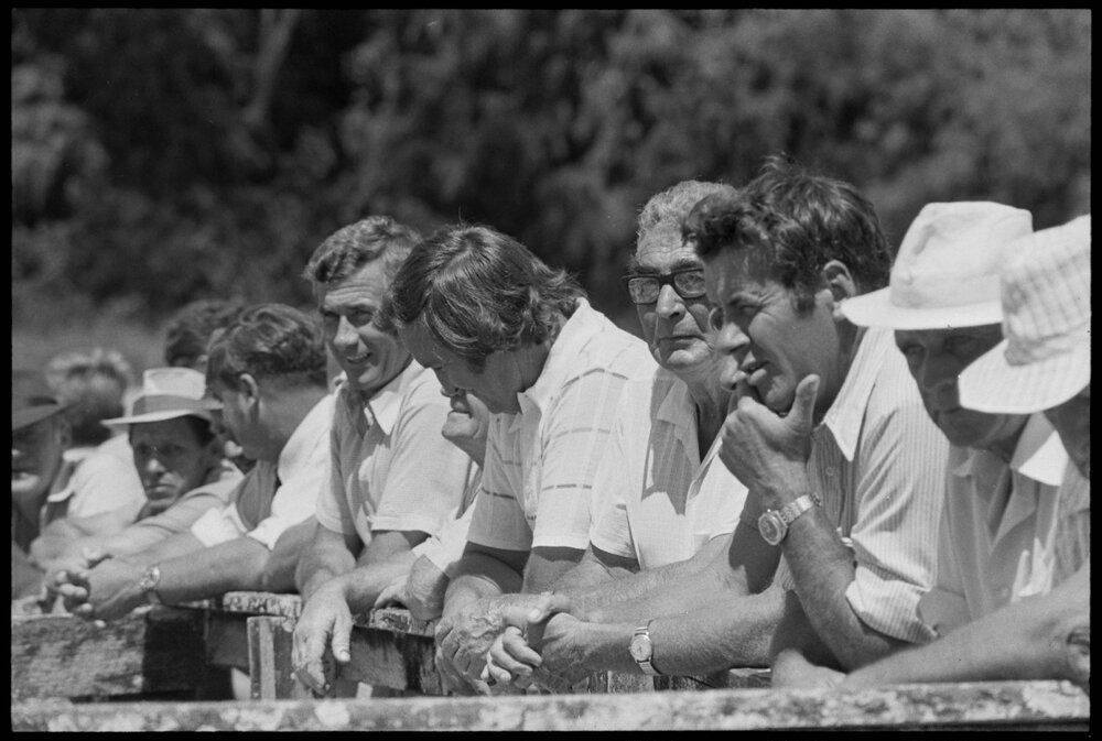 Date25 January 1975Reference Numberphoto gcc-32223DescriptionBuyers watch the sheep on offer in the yards at the Tauranga Ewe Fair held at Judea. Published 25 January 1975.FormatNegativePhysical Description35mm black-and-white negative (8/9)Photographer/CreatorBay of Plenty Times
