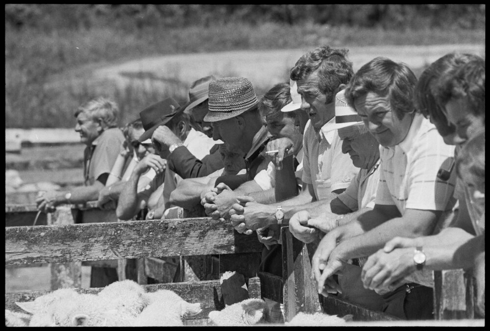 Date25 January 1975Reference Numberphoto gcc-32224DescriptionBuyers watch the sheep on offer in the yards at the Tauranga Ewe Fair held at Judea. Published 25 January 1975.FormatNegativePhysical Description35mm black-and-white negative (9/9)Photographer/CreatorBay of Plenty Times