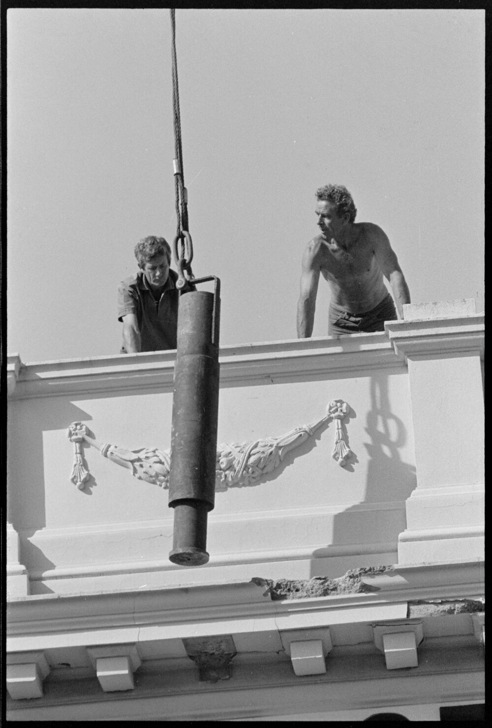 Date27 January 1975Reference Numberphoto gcc-32227DescriptionContractors with a demolition weight chipping the concrete from the facade, in the demolition of the front of the Bank of New Zealand building in Te Puke's main street. Published 27 January 1975.FormatNegativePhysical Description35mm black-and-white negative (3/6)Photographer/CreatorBay of Plenty Times