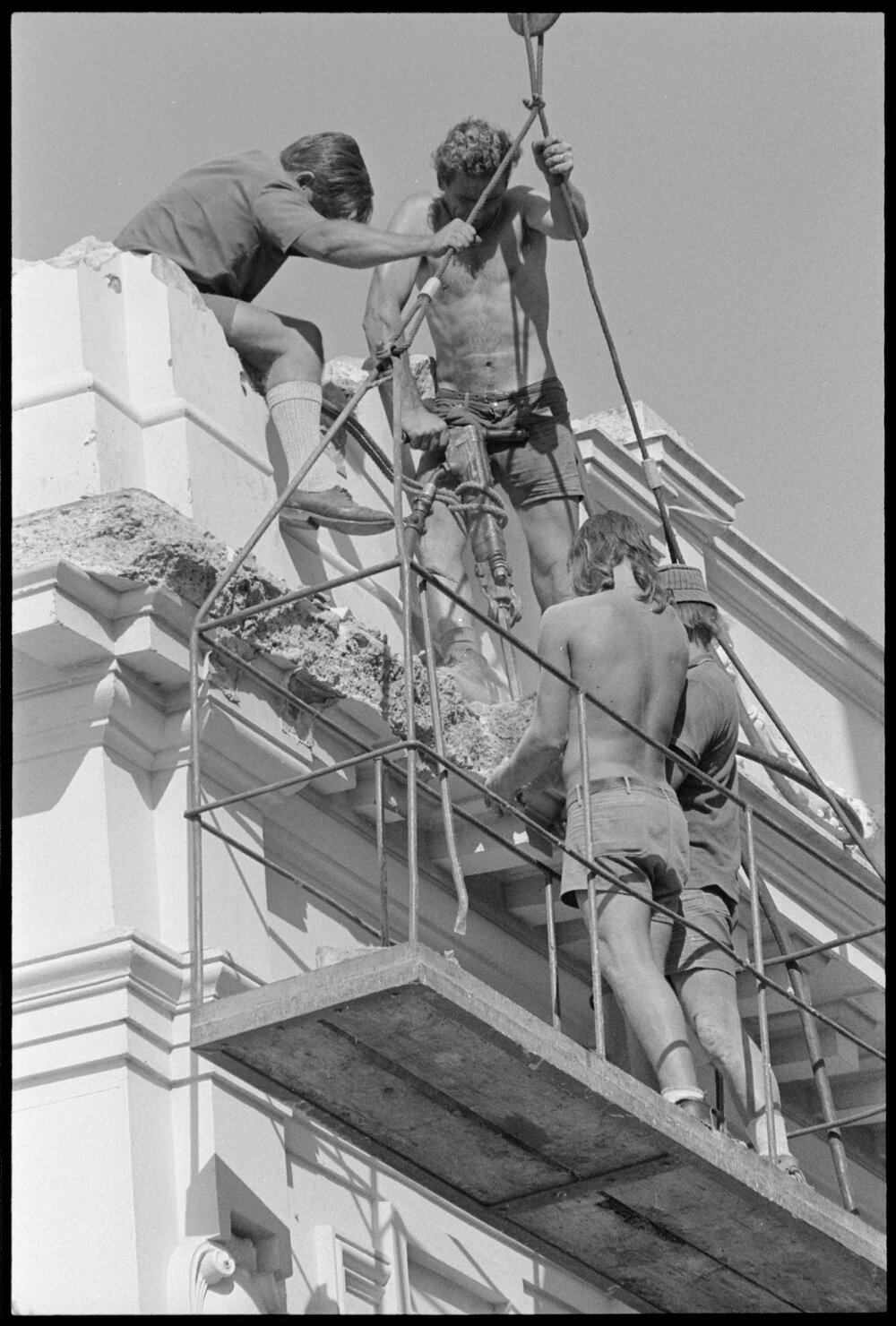 Date27 January 1975Reference Numberphoto gcc-32255DescriptionContractors with a demolition weight chipping the concrete from the facade, in the demolition of the front of the Bank of New Zealand building in Te Puke's main street. Published 27 January 1975.FormatNegativePhysical Description35mm black-and-white negative (7/22)Photographer/CreatorBay of Plenty Times