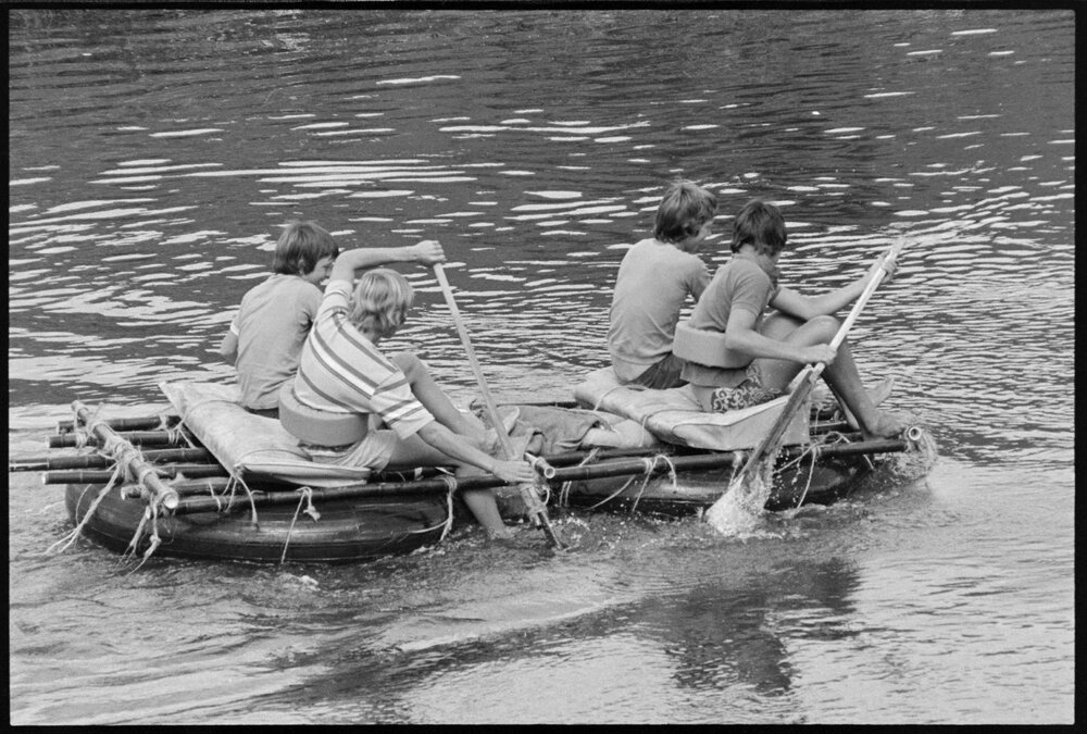 Date27 January 1975Reference Numberphoto gcc-32275DescriptionEntrants in the Paengaroa YFC raft race on the Kaituna River. 27 January 1975.FormatNegativePhysical Description35mm black-and-white negative (5/6)Photographer/CreatorBay of Plenty Times