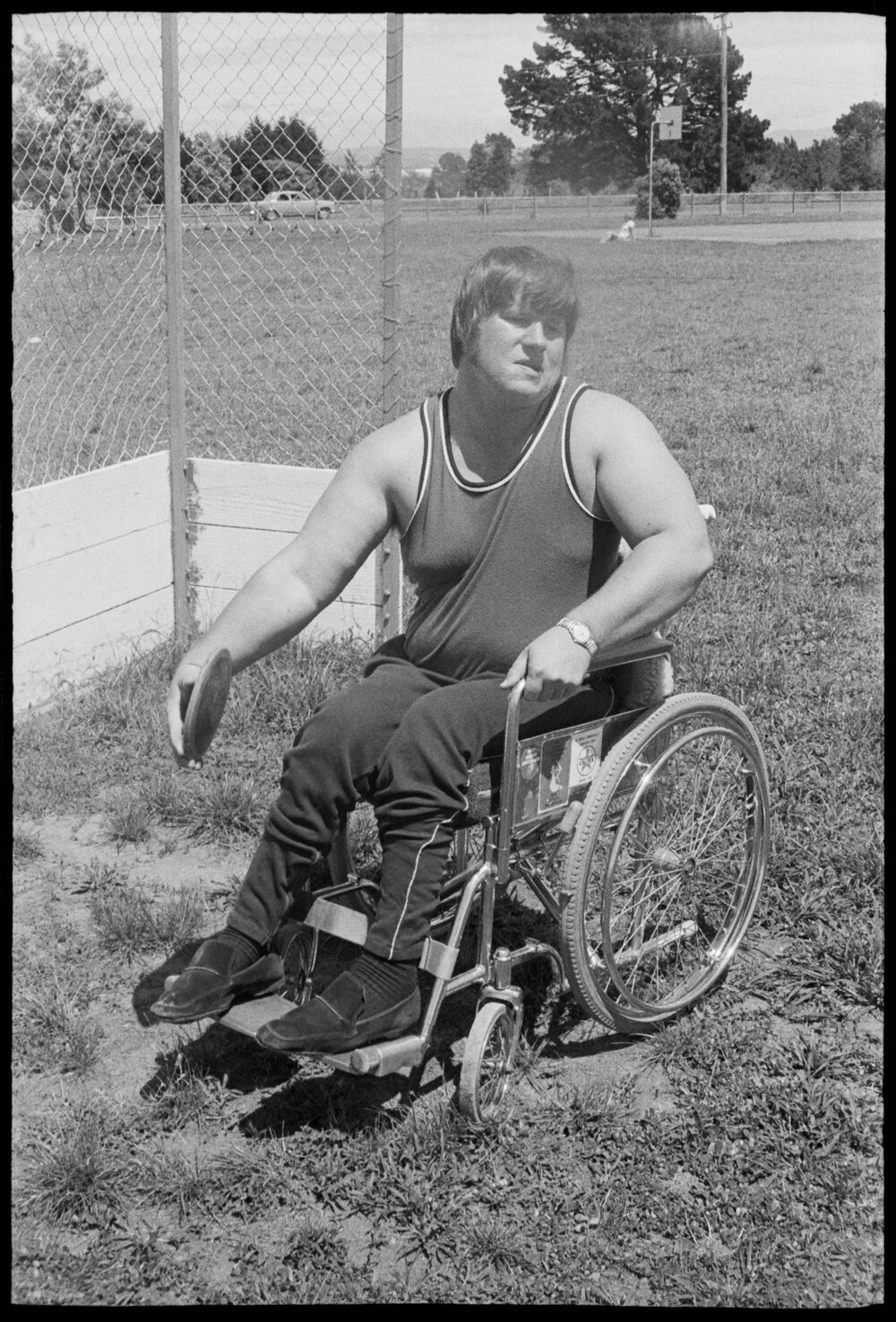 Date27 January 1975Reference Numberphoto gcc-32280DescriptionA competitor in the javelin during the Western Bay of Plenty Paraplegics Games at Mount Maunganui College. 27 January 1975.FormatNegativePhysical Description35mm black-and-white negative (4/12)Photographer/CreatorBay of Plenty Times