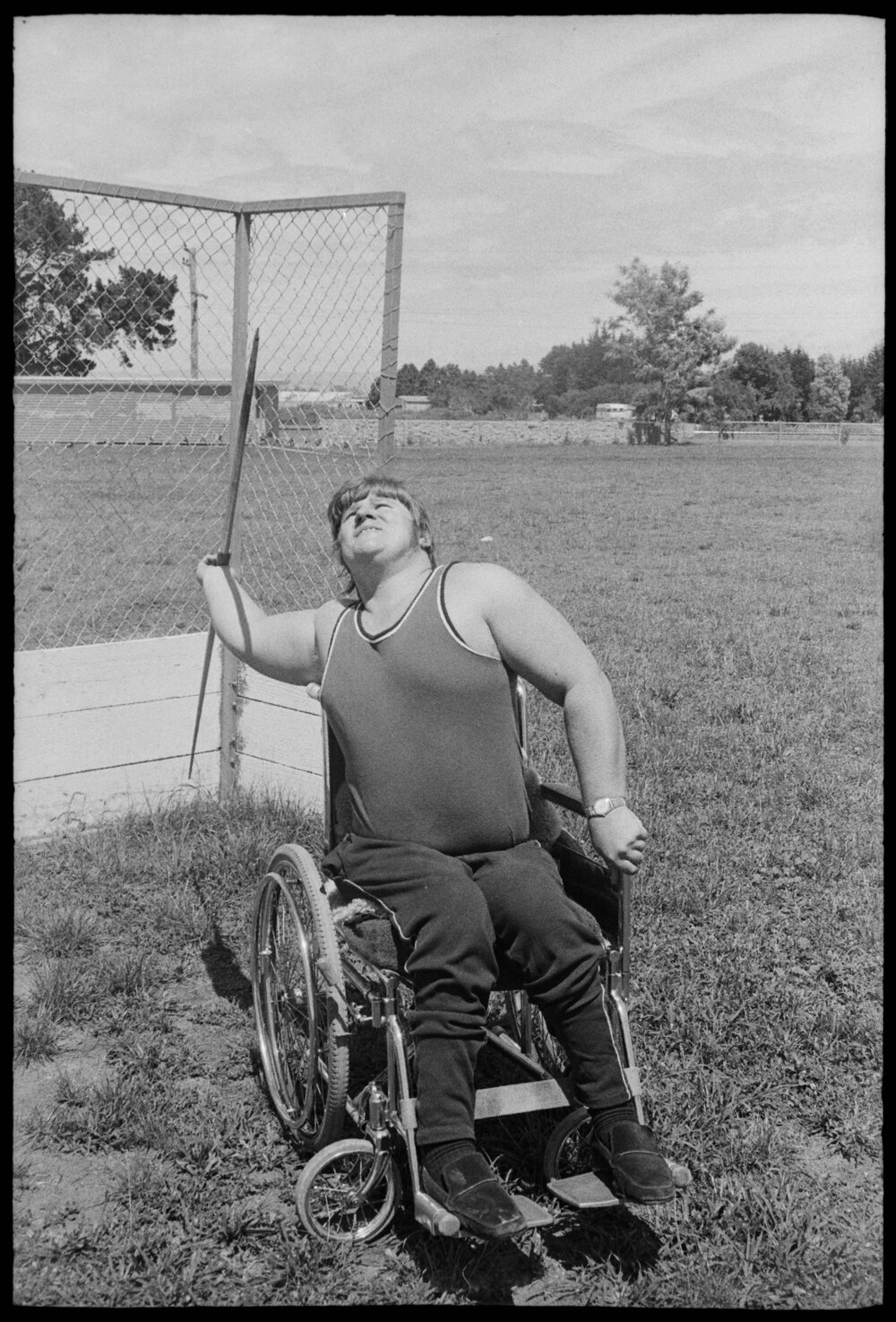 Date27 January 1975Reference Numberphoto gcc-32281DescriptionA competitor in the javelin during the Western Bay of Plenty Paraplegics Games at Mount Maunganui College. 27 January 1975.FormatNegativePhysical Description35mm black-and-white negative (5/12)Photographer/CreatorBay of Plenty Times