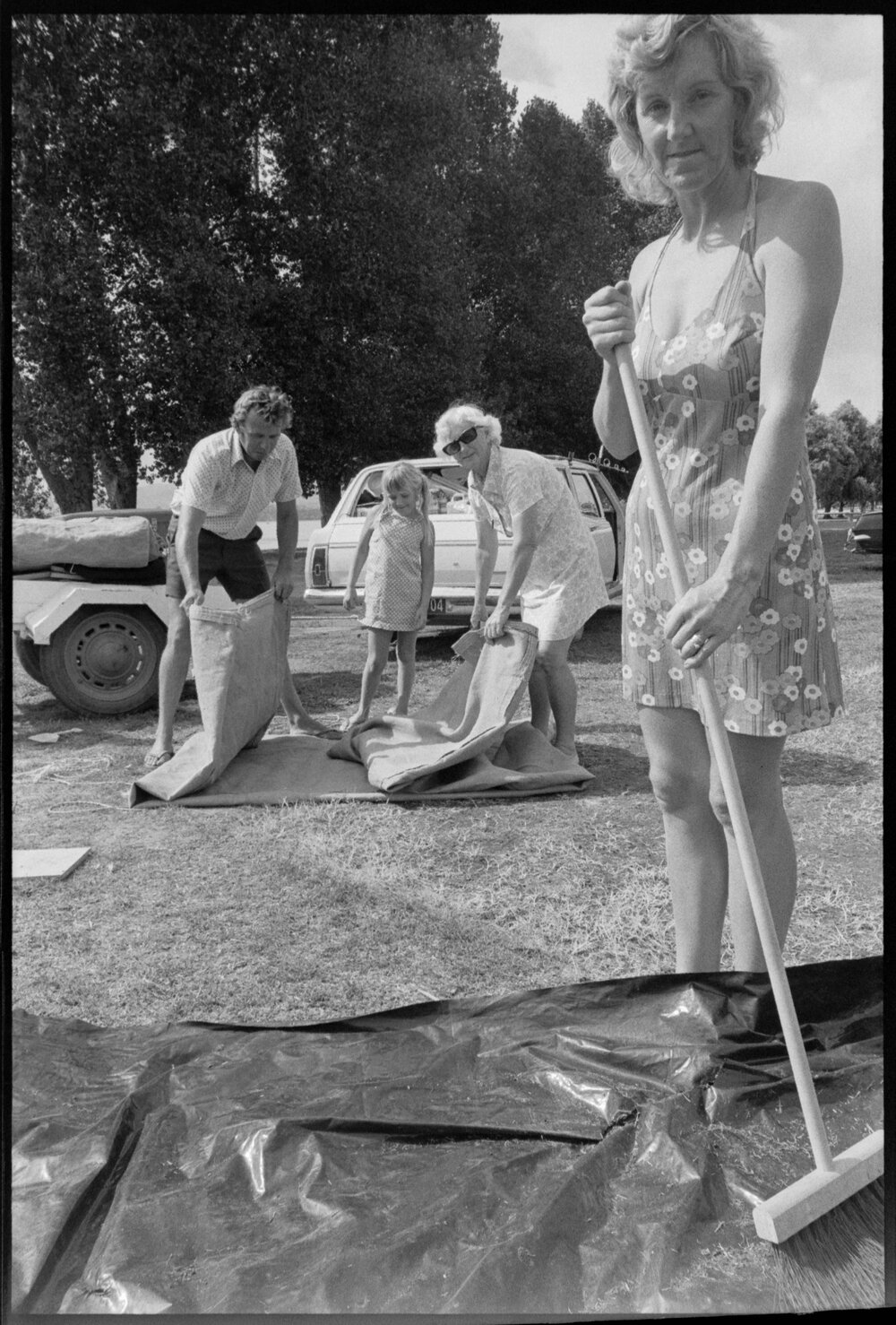 Date27 January 1975Reference Numberphoto gcc-32295DescriptionAucklanders heading back to the bustle of the big city after a camping holiday. Clearing up their site are, from left, Mr B. Nicholson, Debbie Nicholson, P. Rowe and Mrs J. M. Nicholson. Published 27 January 1975.FormatNegativePhysical Description35mm black-and-white negative (1/5)Photographer/CreatorBay of Plenty Times