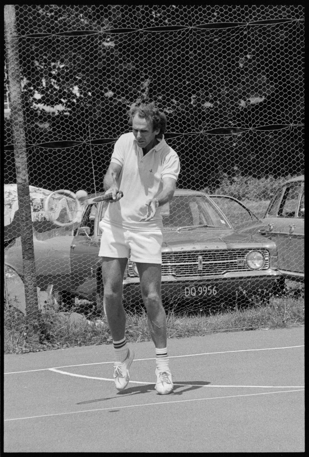 Date28 January 1975Reference Numberphoto gcc-32330DescriptionRotorua's Neville Munro plays a shot on his way to winning the singles title during the Bay of Plenty senior residential tennis championships at Te Puke. Published 28 January 1975.FormatNegativePhysical Description35mm black-and-white negative (5/9)Photographer/CreatorBay of Plenty Times