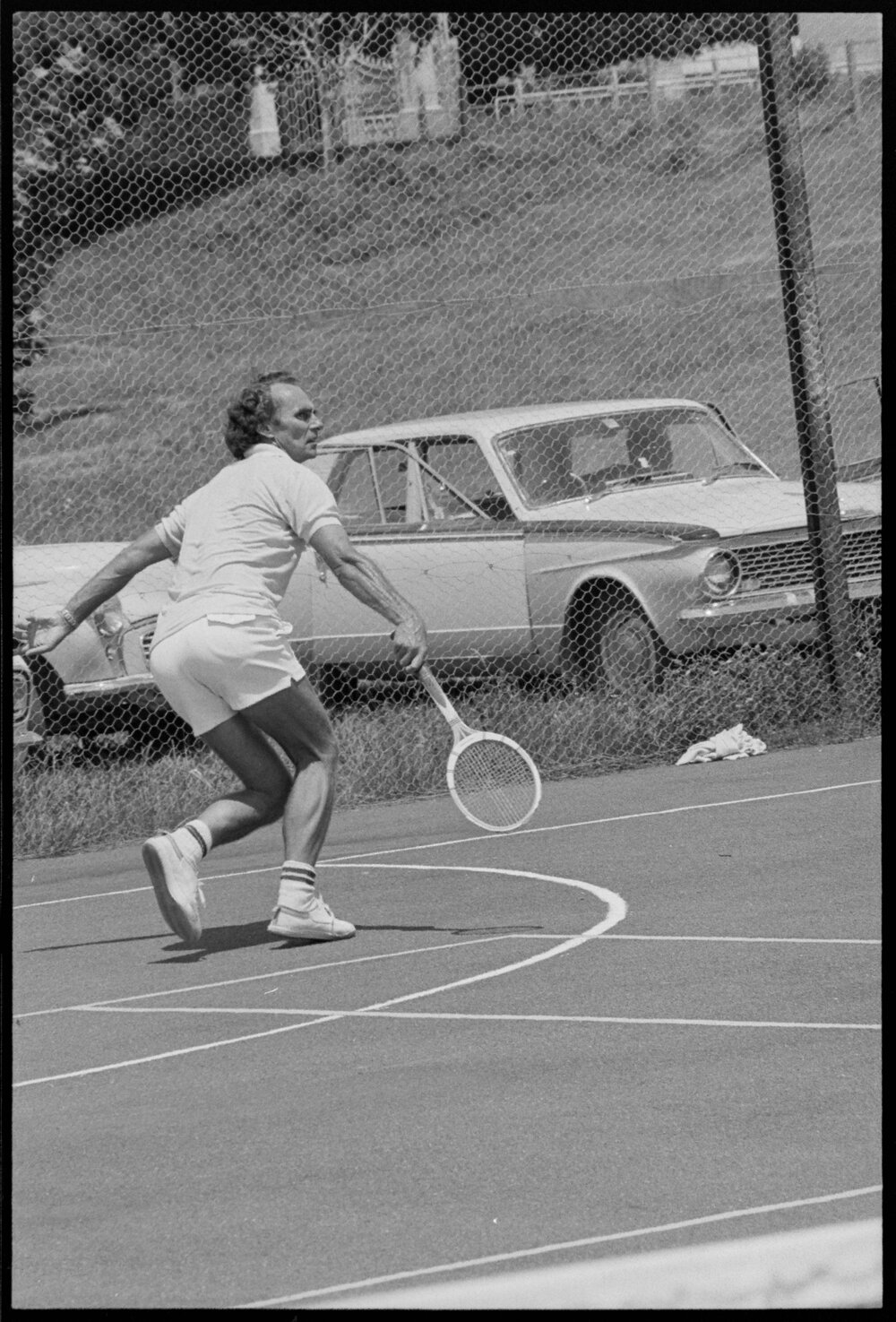 Date28 January 1975Reference Numberphoto gcc-32331DescriptionRotorua's Neville Munro plays a shot on his way to winning the singles title during the Bay of Plenty senior residential tennis championships at Te Puke. Published 28 January 1975.FormatNegativePhysical Description35mm black-and-white negative (6/9)Photographer/CreatorBay of Plenty Times