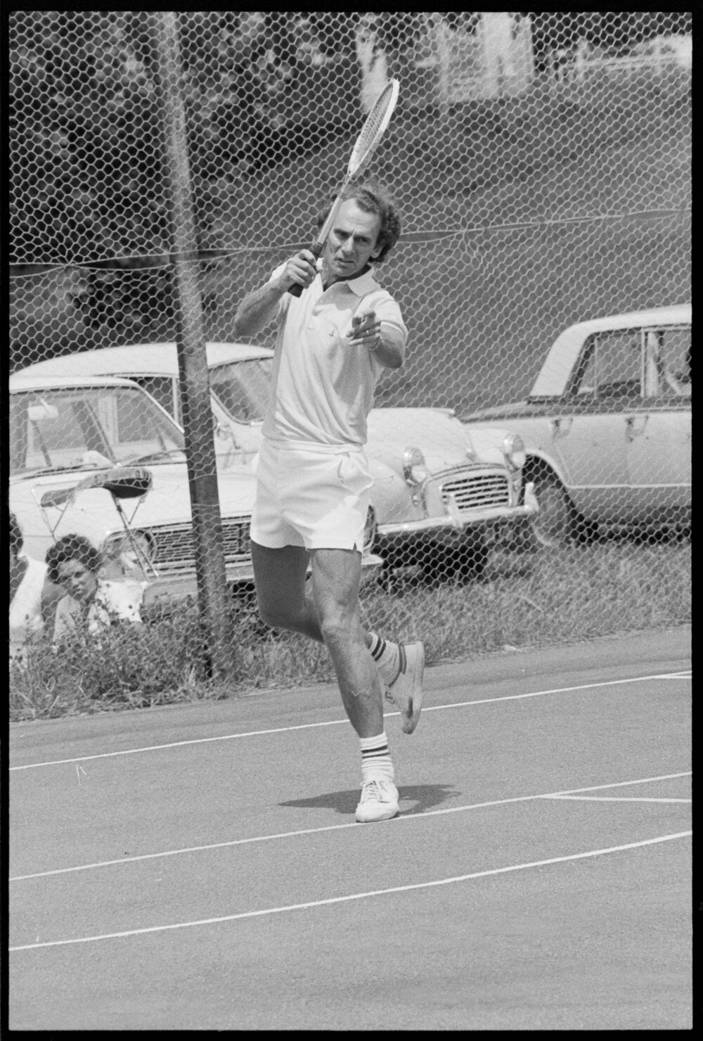 Date28 January 1975Reference Numberphoto gcc-32343DescriptionRotorua's Neville Munro plays a shot on his way to winning the singles title during the Bay of Plenty senior residential tennis championships at Te Puke. Published 28 January 1975.FormatNegativePhysical Description35mm black-and-white negative (9/9)Photographer/CreatorBay of Plenty Times
