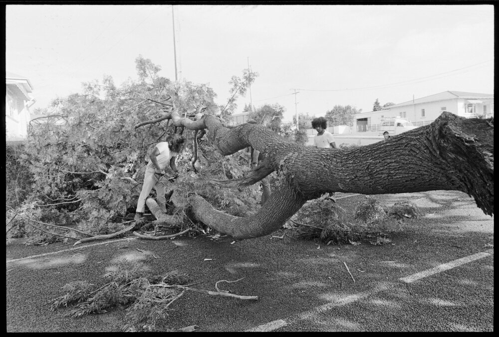 Date28 January 1975Reference Numberphoto gcc-32345DescriptionA Grevillia Robusta ("silky oak") tree branch blocks Devonport Road near 18th Avenue after crashing down in the morning. Tauranga City Council's Mr A. C. Barbery oversaw the removal work. The council's director of parks and reserves, Mr W. G. Turner, said water had rotted the branch's joint with the tree, causing it to weaken and break. Published 28 January 1975.FormatNegativePhysical Description35mm black-and-white negative (1/9)Photographer/CreatorBay of Plenty Times