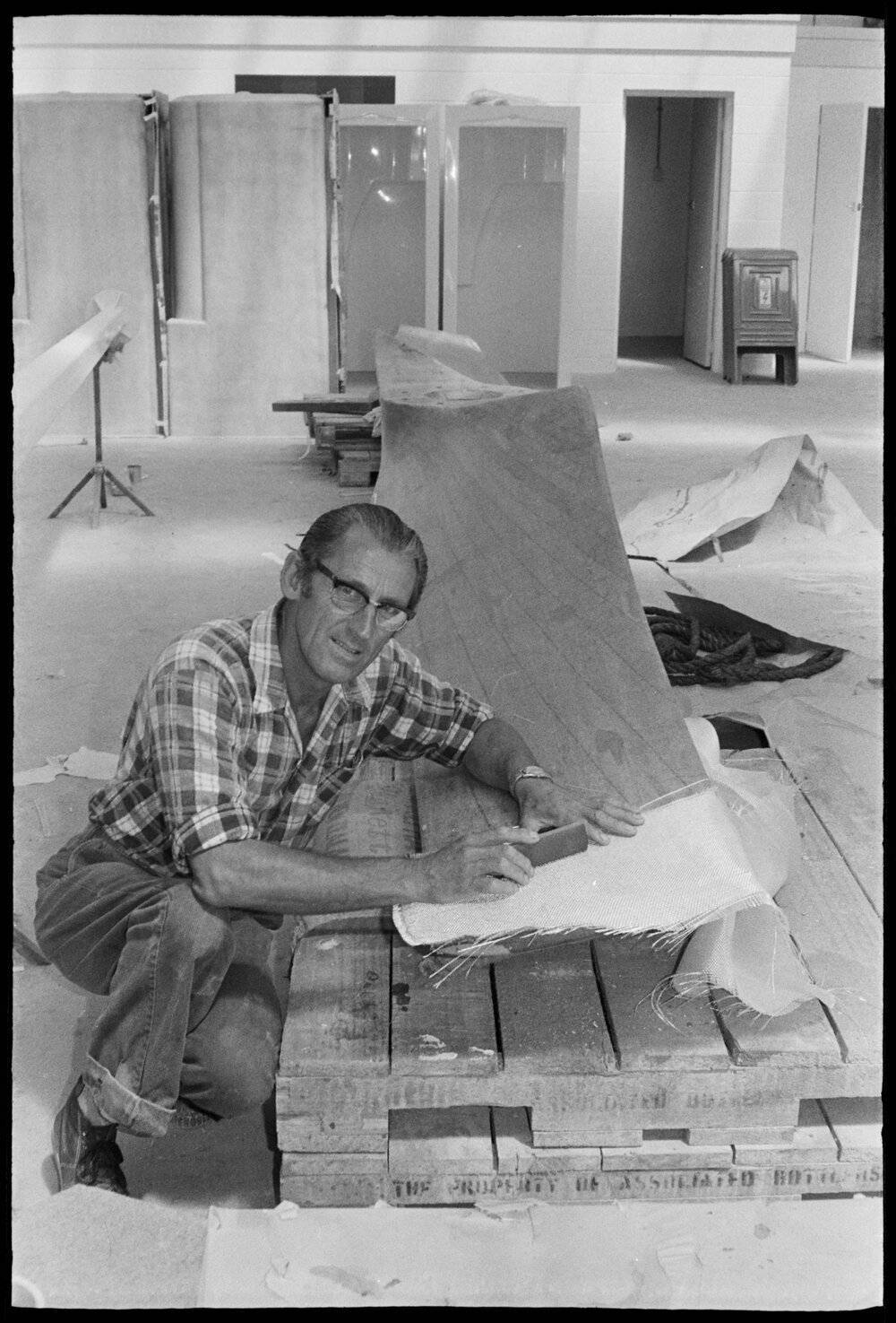 Date30 January 1975Reference Numberphoto gcc-32387DescriptionMr A. R. Manwell applying glass fibre rovings to one of two 26ft long extractor fan blades, originally built by the De Havilland aircraft company for use at the Bay of Plenty Co-Operative Fertiliser Co's Mount Maunganui plant. They are currently being refurbished by a Mount firm. Published 30 January 1975.FormatNegativePhysical Description35mm black-and-white negative (1/6)Photographer/CreatorBay of Plenty Times