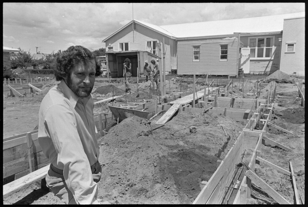 Date1 February 1975Reference Numberphoto gcc-32430DescriptionReverend David Pratt, on the building site of the new St. James Union Church resulting from the merger of the Greerton Methodist and Presbyterian congregations. Published 1 February 1975.FormatNegativePhysical Description35mm black-and-white negative (4/7)Photographer/CreatorBay of Plenty Times