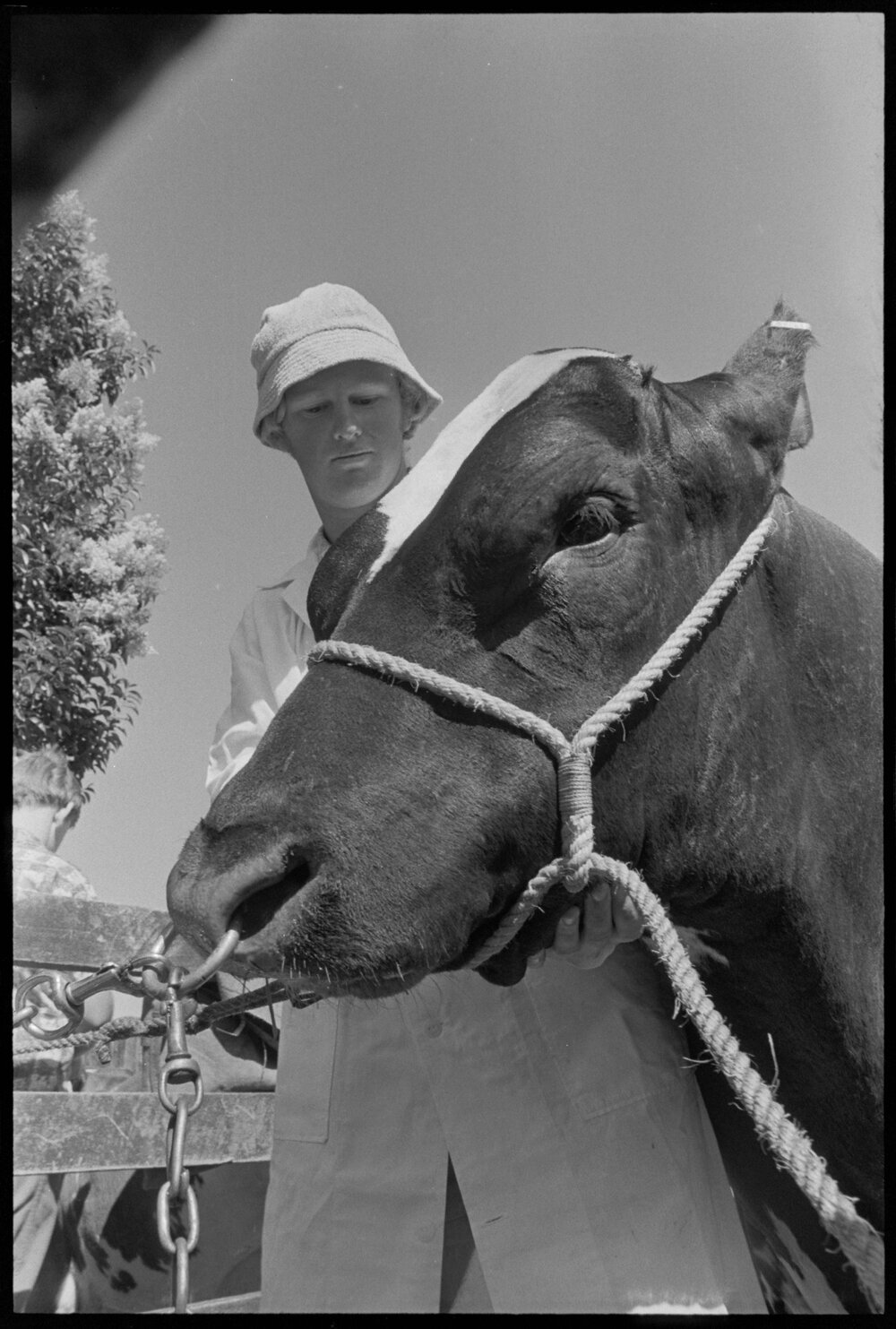 Date1 February 1975Reference Numberphoto gcc-32442DescriptionGlenvale Orient, a four-year-old Ayrshire bull owned by Mr A. S. M. Leech, of Katikati, is given a final rub down by Graeme Leech before judging at the Katikati A. and P. Show. Published 1 February 1975.FormatNegativePhysical Description35mm black-and-white negative (4/6)Photographer/CreatorBay of Plenty Times