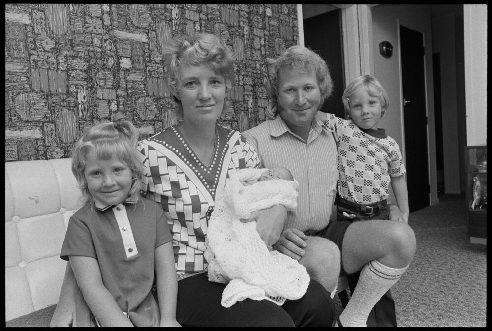 Date4 February 1975Reference Numberphoto gcc-32487DescriptionProud parents Mr and Mrs G. Gulliver, of Mount Maunganui, with their children, including Michael Peter, at home today for his first day after nearly four months fighting for survival in the Tauranga maternity annexe. Michael, the survivor of premature twins, was only 2 lb 4 oz at birth and was given only a 1 per cent chance of survival. Published 4 February 1975.FormatNegativePhysical Description35mm black-and-white negative (5/6)Photographer/CreatorBay of Plenty Times