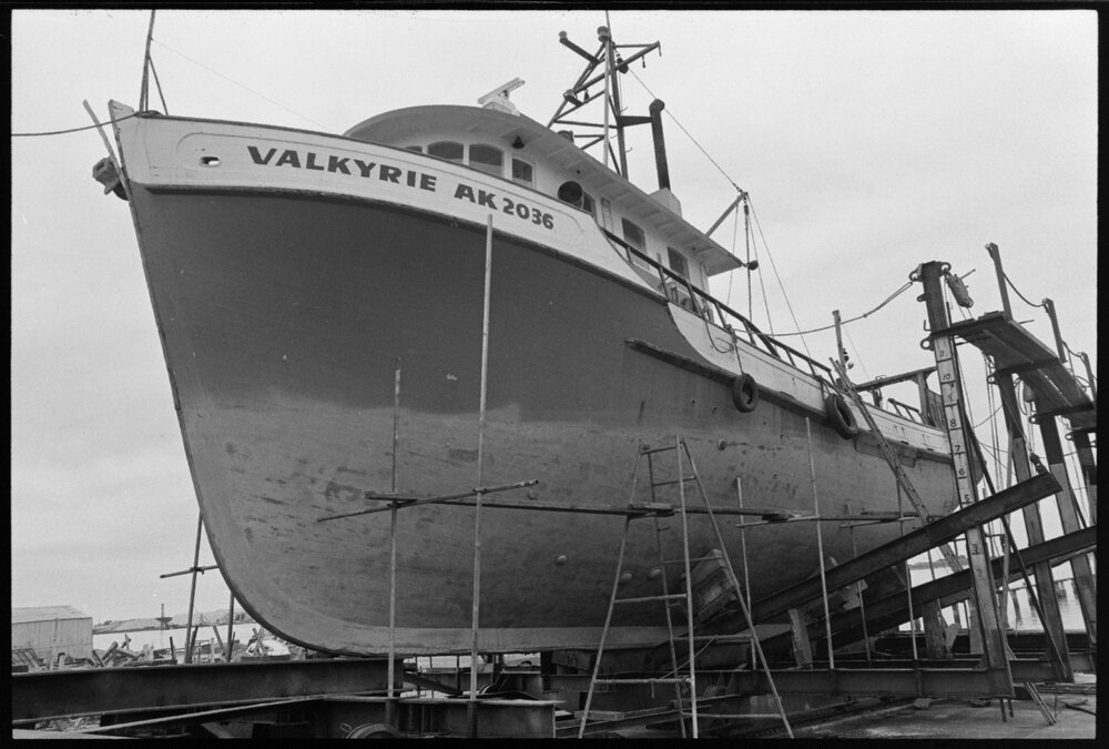 Date5 February 1975Reference Numberphoto gcc-32500DescriptionThe large Sanfords Fisheries Ltd boat, Valkyrie, dwarfs its surroundings on the Bay of Plenty Harbour Board's slipway at Sulphur Point where it is having its thrice-yearly scrub and paint. Published 5 February 1975.FormatNegativePhysical Description35mm black-and-white negative (3/3)Photographer/CreatorBay of Plenty Times