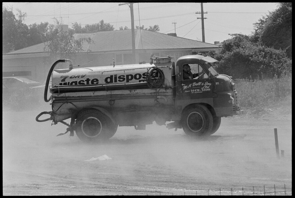 Date7 February 1975Reference Numberphoto gcc-32554DescriptionA water-truck dribbles water on to the site of the Ministry of Works Tauranga residency depot at Chadwick Road which is causing dust issues to residents. Published 7 February 1975.FormatNegativePhysical Description35mm black-and-white negative (1/12)Photographer/CreatorBay of Plenty Times