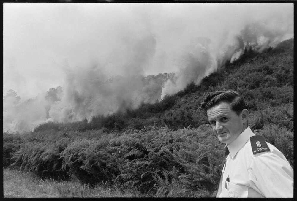 Date11 February 1975Reference Numberphoto gcc-32622DescriptionFire prevention officer for the Tauranga United Fire Board, Mr R. J. Williams, at the scrub fire that occured eight miles up Pyes Pā Road. Published 11 February 1975.FormatNegativePhysical Description35mm black-and-white negative (1/3)Photographer/CreatorBay of Plenty Times