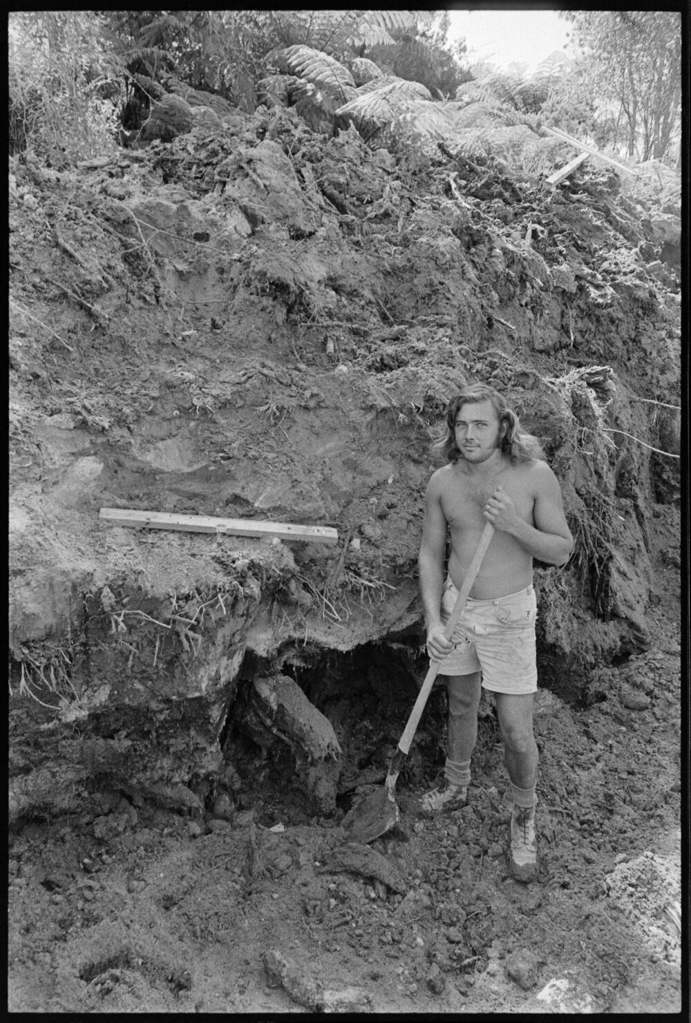 Date12 February 1975Reference Numberphoto gcc-32628DescriptionRemoving earth from a root of the massive tree found buried at the Tauranga Outdoor Museum site is a digger operator, Mr Bruce Keith. Published 12 February 1975.FormatNegativePhysical Description35mm black-and-white negative (1/6)Photographer/CreatorBay of Plenty Times