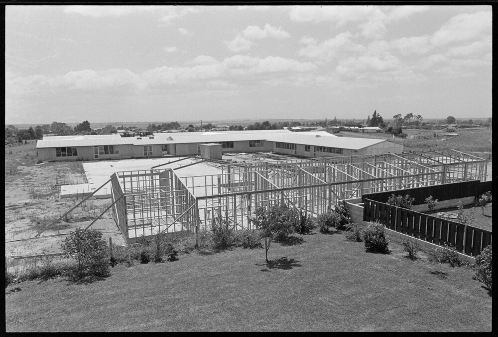 Te Puke, large wooden building frame (11 February 1975). Pae Korokī, accessed 08/04/2026, https://paekoroki.tauranga.govt.nz/nodes/view/115322