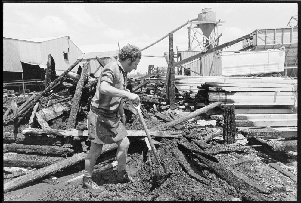 Date11 February 1975Reference Numberphoto gcc-32644DescriptionA blaze destroyed the docking and sorting departments of the Puke Pine saw mill. Published 11 February 1975.FormatNegativePhysical Description35mm black-and-white negative (1/9)Photographer/CreatorBay of Plenty Times
