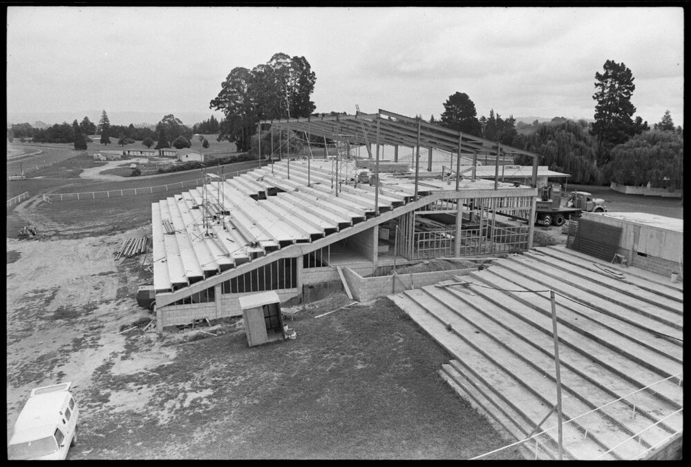 Date13 February 1975Reference Numberphoto gcc-32671DescriptionWork on the $400,000 public grandstand and totalisator complex being built for the Bay of Plenty Racing Club at the Tauranga racecourse is progressing well and it is expected that part of the betting facilities will be in operation for the Stann Travel Stakes day. Published 13 February 1975.FormatNegativePhysical Description35mm black-and-white negative (1/7)Photographer/CreatorBay of Plenty Times