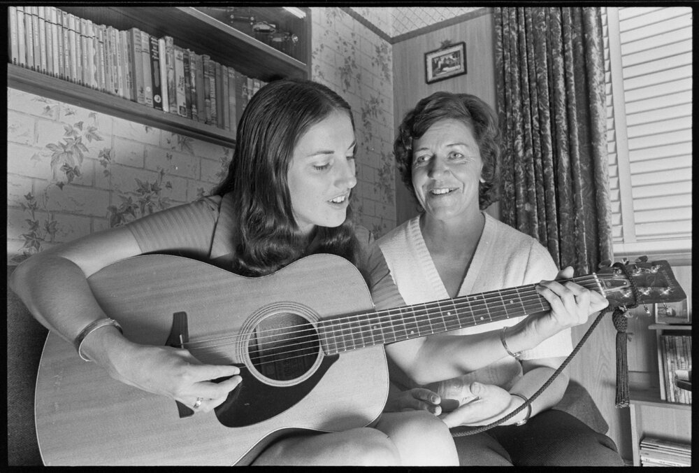 Date14 February 1975Reference Numberphoto gcc-32678DescriptionMarian White (right) and Pat Seales, back from competing at the National Country Music Jamboree in Australia. Published 14 February 1975.FormatNegativePhysical Description35mm black-and-white negative (1/7)Photographer/CreatorBay of Plenty Times