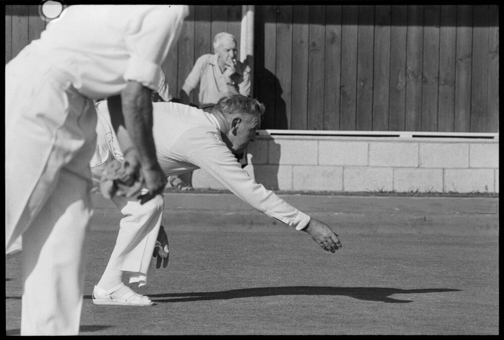 Date15 February 1975Reference Numberphoto gcc-32685DescriptionIn the Tauranga bowling tournament was Vern Muir from the New Plymouth club Paritutu. Published 15 February 1975.FormatNegativePhysical Description35mm black-and-white negative (1/8)Photographer/CreatorBay of Plenty Times