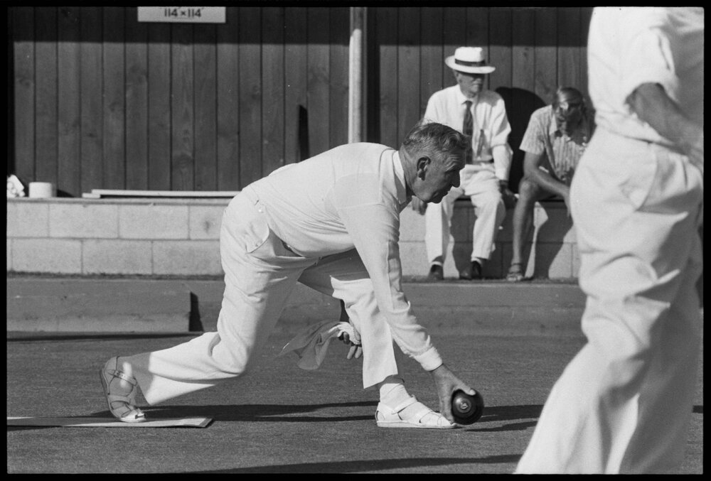 Date15 February 1975Reference Numberphoto gcc-32686DescriptionIn the Tauranga bowling tournament was Vern Muir from the New Plymouth club Paritutu. Published 15 February 1975.FormatNegativePhysical Description35mm black-and-white negative (2/8)Photographer/CreatorBay of Plenty Times