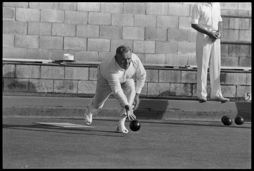 Date15 February 1975Reference Numberphoto gcc-32688DescriptionIn the Tauranga bowling tournament was Vern Muir from the New Plymouth club Paritutu. Published 15 February 1975.FormatNegativePhysical Description35mm black-and-white negative (4/8)Photographer/CreatorBay of Plenty Times