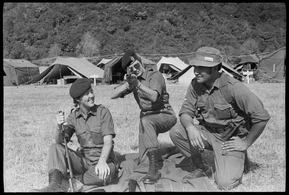 Date15 February 1975Reference Numberphoto gcc-32697DescriptionCorporal Cushla Williams (left) and Private Milly Crawford receive instruction from Corporal H. Harris on the M16 automatic rifle. Some of the 250 territorial volunteers of the 6th Battalion (Hauraki) RNZIR who are staying in the Tarawera Ranges. Published 15 February 1975.FormatNegativePhysical Description35mm black-and-white negative (1/6)Photographer/CreatorBay of Plenty Times