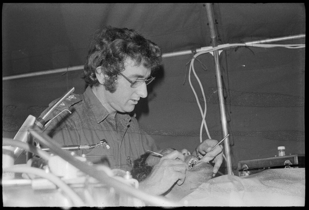 Date15 February 1975Reference Numberphoto gcc-32706DescriptionThe dental treatment that Padre T. Raumati is receiving from the camp's dentist, Captain D. M. A. Haszard, is the best available. Captain Haszard said the mobile equipment is technically equal, if not superior, to equipment used in static surgeries. They are part of the 250 territorial volunteers of the 6th Battalion (Hauraki) RNZIR who are staying in the Tarawera Ranges. Published 15 February 1975.FormatNegativePhysical Description35mm black-and-white negative (1/5)Photographer/CreatorBay of Plenty Times