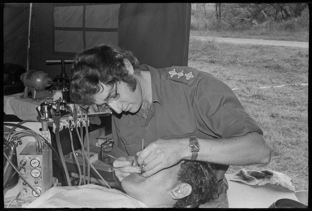 Date15 February 1975Reference Numberphoto gcc-32708DescriptionThe dental treatment that Padre T. Raumati is receiving from the camp's dentist, Captain D. M. A. Haszard, is the best available. Captain Haszard said the mobile equipment is technically equal, if not superior, to equipment used in static surgeries. They are part of the 250 territorial volunteers of the 6th Battalion (Hauraki) RNZIR who are staying in the Tarawera Ranges. Published 15 February 1975.FormatNegativePhysical Description35mm black-and-white negative (3/5)Photographer/CreatorBay of Plenty Times