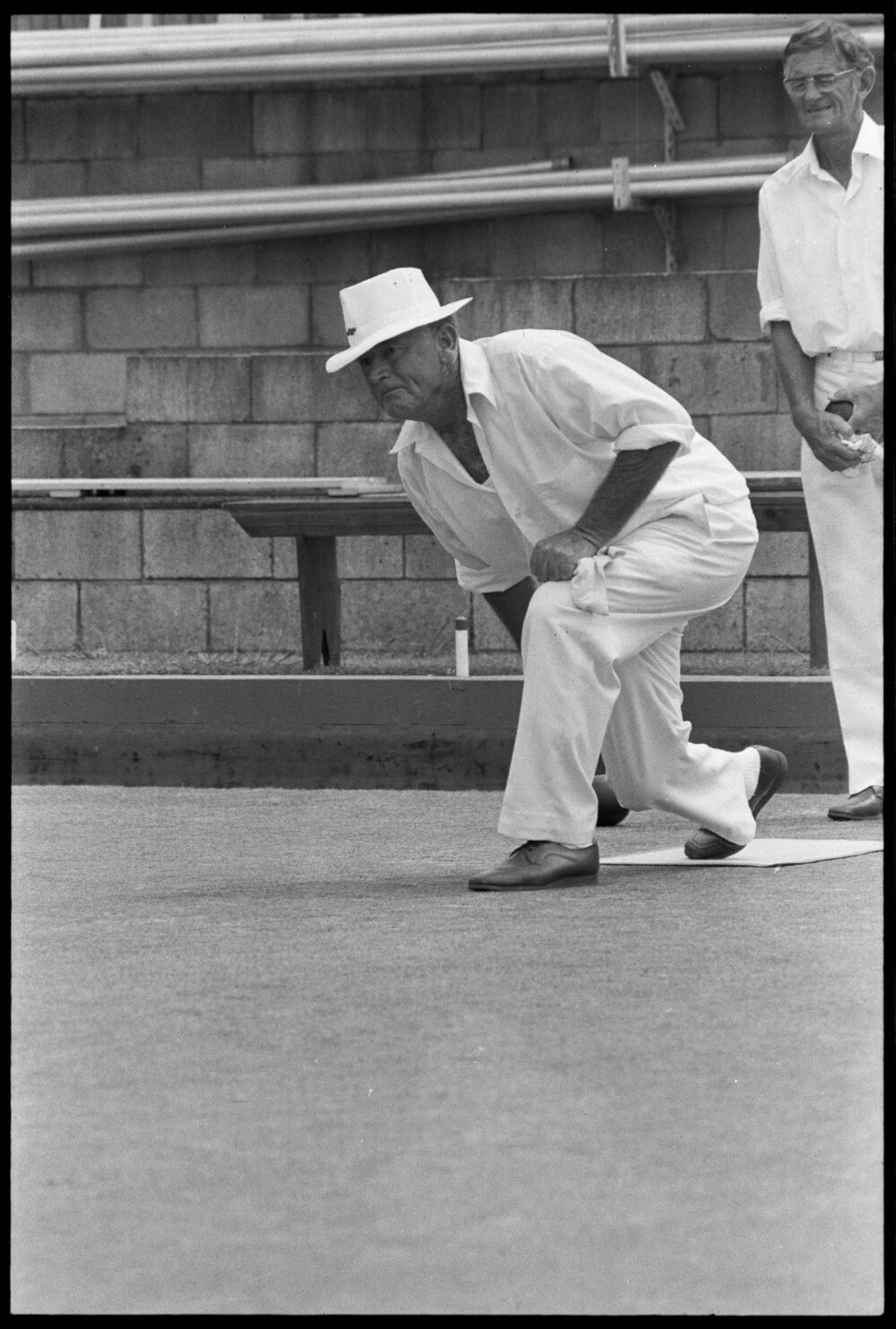Date17 February 1975Reference Numberphoto gcc-32754DescriptionSandy Wilson on the way to taking his Hauraki team to victory in the final of the Tauranga combined bowling clubs' open fours tournament. Wilson beat Laurie Cutler (Tauranga) 27-12 in the final. Published 17 February 1975.FormatNegativePhysical Description35mm black-and-white negative (9/12)Photographer/CreatorBay of Plenty Times