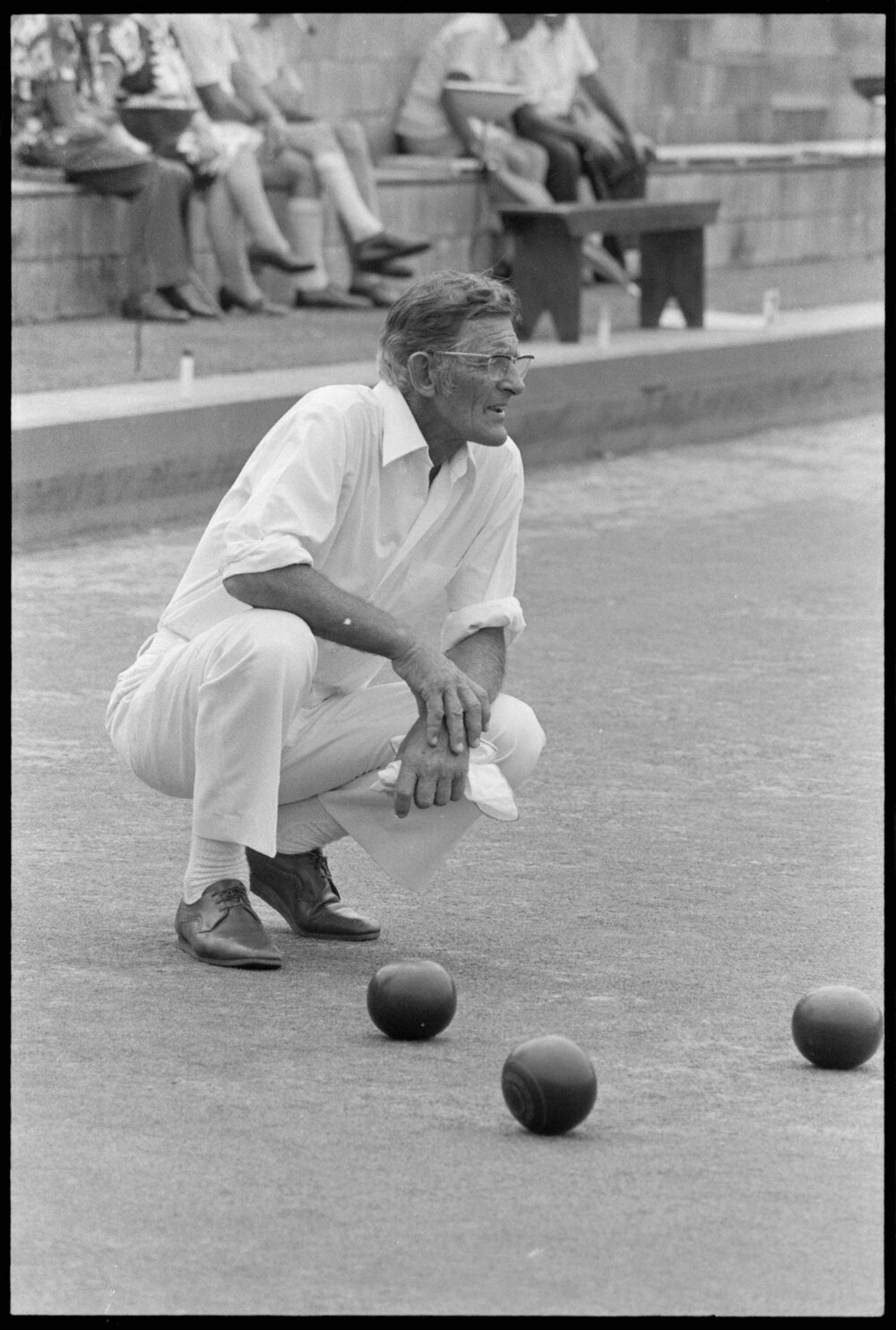 Date17 February 1975Reference Numberphoto gcc-32776DescriptionCliff Potter (Pukekohe) during his semi-final win in the Tauranga combined bowling clubs' open fours tournament at the Tauranga RSA club. Published 17 February 1975.FormatNegativePhysical Description35mm black-and-white negative (13/18)Photographer/CreatorBay of Plenty Times
