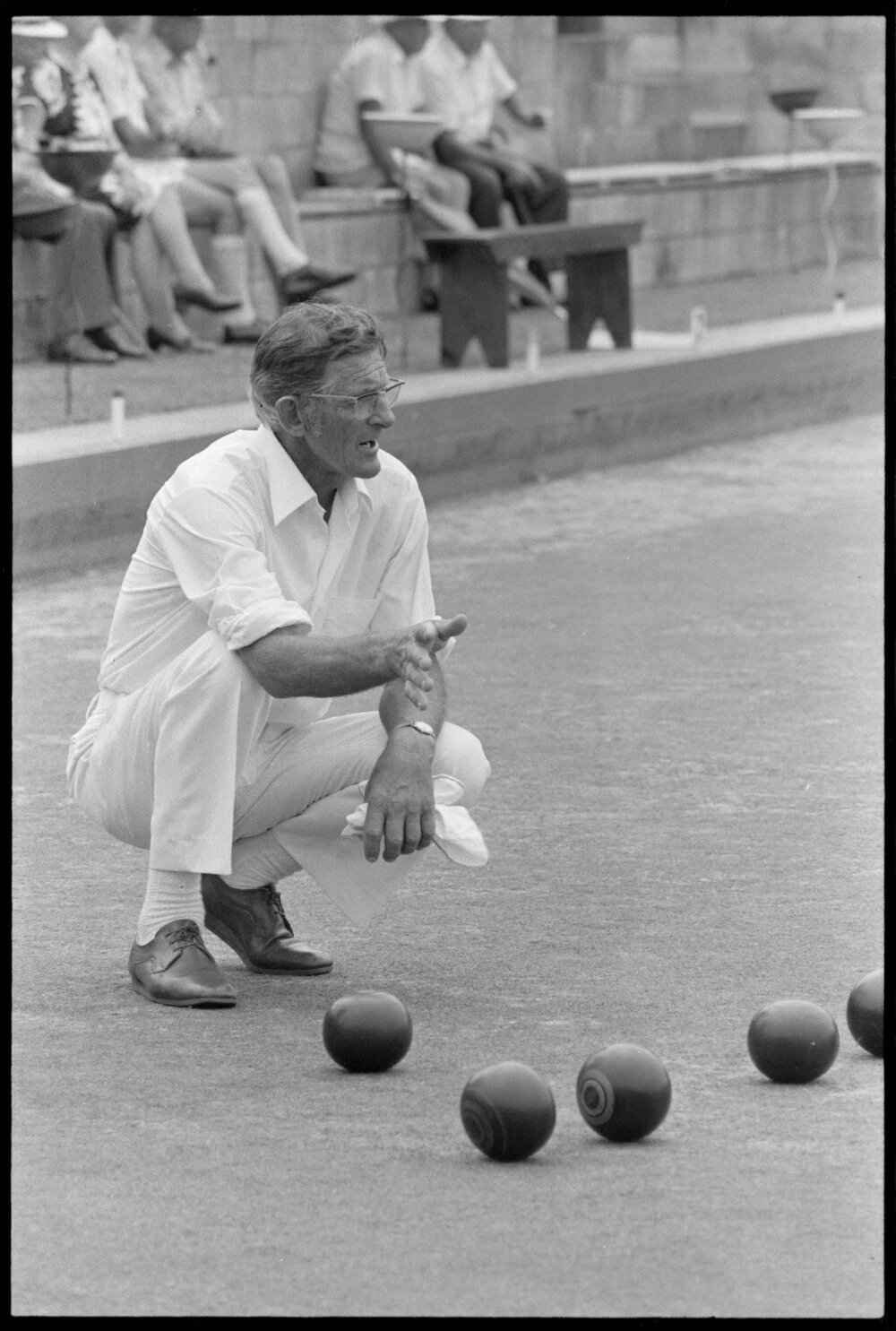 Date17 February 1975Reference Numberphoto gcc-32777DescriptionCliff Potter (Pukekohe) during his semi-final win in the Tauranga combined bowling Clubs' open fours tournament at the Tauranga RSA club. Published 17 February 1975.FormatNegativePhysical Description35mm black-and-white negative (14/18)Photographer/CreatorBay of Plenty Times