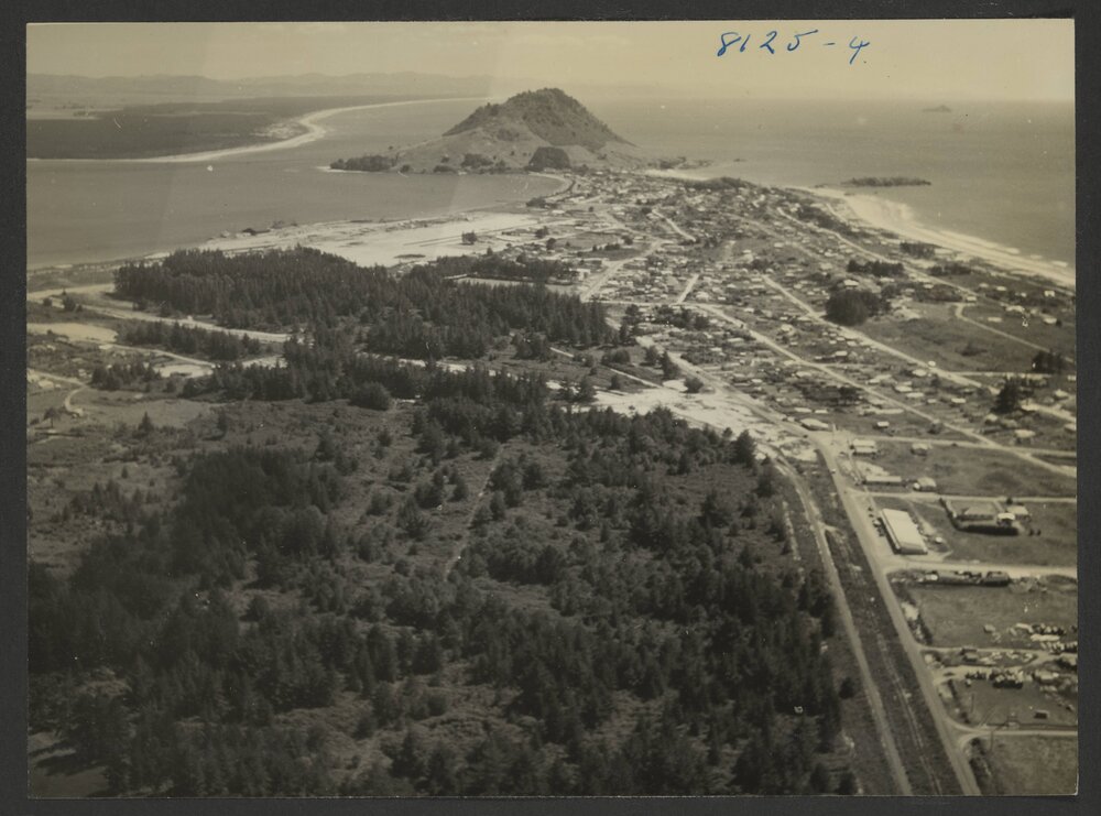 Date1956Reference NumberPhoto 25-1907DescriptionAerial photograph from page 31 of the photograph 'album with views of Matua and Mount Maunganui' near the property of Naera Gail Imrie-Petherick, ( -2013), née NaumannFormatPrint