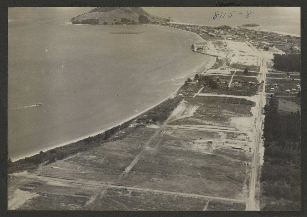 Date1956Reference NumberPhoto 25-1913DescriptionAerial photograph from page 37 of the photograph 'album with views of Matua and Mount Maunganui' near the property of Naera Gail Imrie-Petherick, ( -2013), née NaumannFormatPrint