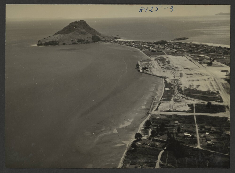Date1956Reference NumberPhoto 25-1914DescriptionAerial photograph from page 38 of the photograph 'album with views of Matua and Mount Maunganui' near the property of Naera Gail Imrie-Petherick, ( -2013), née NaumannFormatPrint