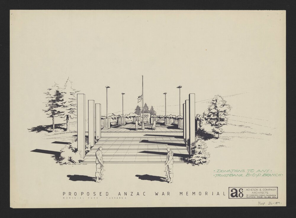 Acheson & Company Architects, Proposed ANZAC War Memorial (September 1989). Pae Korokī, accessed 08/04/2026, https://paekoroki.tauranga.govt.nz/nodes/view/115607