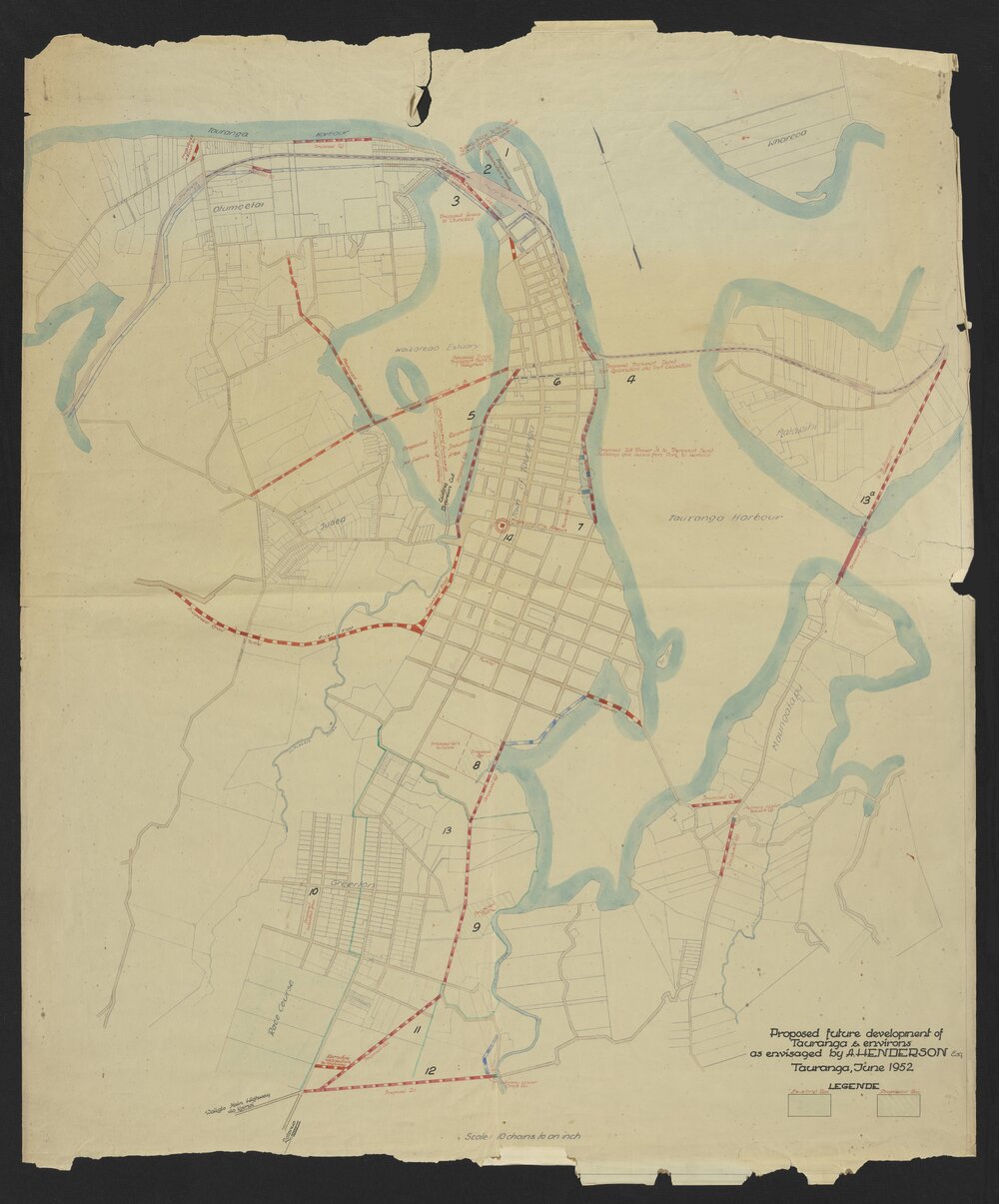Henderson, A., Henderson's Outline Plan of Tauranga (June 1952). Pae Korokī, accessed 09/04/2026, https://paekoroki.tauranga.govt.nz/nodes/view/115668