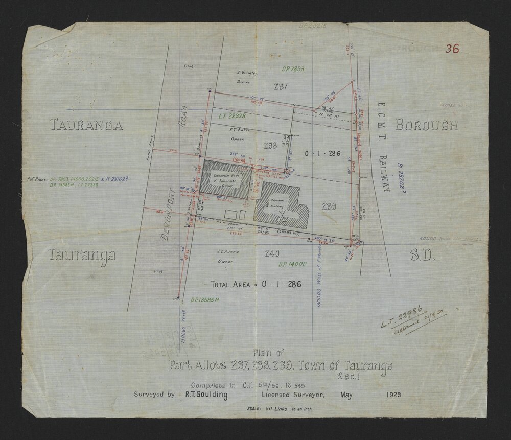 Tauranga City Council, Plan of part allots. 237, 238, 239, Town of Tauranga sec. 1 (May 1929). Pae Korokī, accessed 04/04/2026, https://paekoroki.tauranga.govt.nz/nodes/view/115965