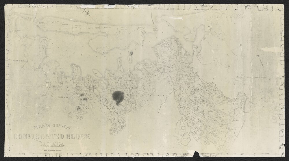Plan of surveys in the Confiscated Block, Tauranga (c. 1869). Pae Korokī, accessed 09/04/2026, https://paekoroki.tauranga.govt.nz/nodes/view/115985