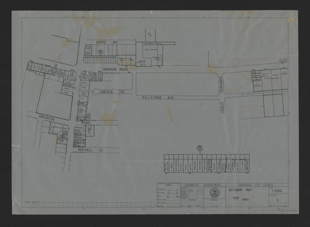 Tauranga City Council, Cameron Road, Tauranga (c. 1982). Pae Korokī, accessed 26/03/2026, https://paekoroki.tauranga.govt.nz/nodes/view/116008