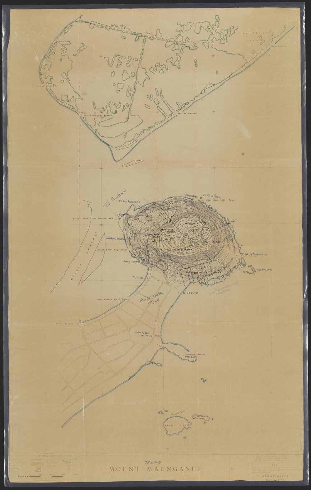 Date1968Reference NumberMap 24-110DescriptionMap drawn from aerial photographs flown 3 Nov 1968. Shows 10-foot contours around Mauao. Printed and added notes indicate the original Māori land subdivision.Barcode33001000378777CreatorAero Surveys (NZ) LtdMap TypeLand MapsPhysical DescriptionLaminated colour map size is 107cm x 66cmScale1:4,800