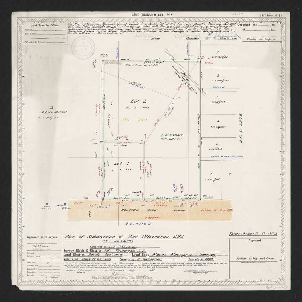Gallagher, A., Plan of Subdivision of Part Whareroa 2H2 (July 1968). Pae Korokī, accessed 09/04/2026, https://paekoroki.tauranga.govt.nz/nodes/view/116032