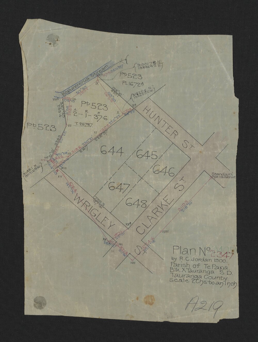 Jordan, Richard Coles, Tauranga: Plan no. 3405a (2347) (1900). Pae Korokī, accessed 09/04/2026, https://paekoroki.tauranga.govt.nz/nodes/view/116045