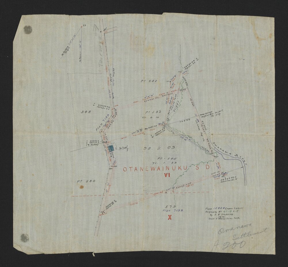Date1910Reference NumberMap 23-239DescriptionŌmanawa area: Plan 15820 Crown Lands, originally no. 6718 L.T. Map showing lots 348, 579, 580, 582 on Ōmanawa Road near Ōmanawa Falls. Shows a site for a school. Pencilled note: "Ōmanawa Settlement". Index Map of Tauranga county shows lot 348.Barcode33001000213131CreatorStubbing, Arthur BowieMap TypeLand MapsPhysical DescriptionColour map size is 39cm x 43cmScale1:3,960