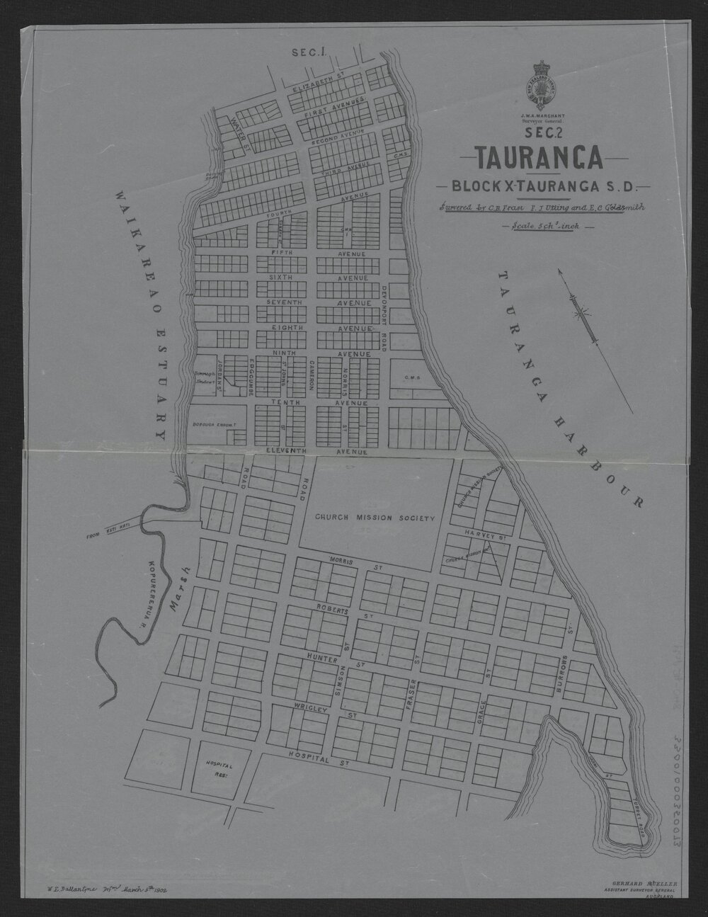 Toitū Te Whenua Land Information New Zealand, Tauranga - Section no. 2 - Block X Tauranga S.D. (5 March 1902). Pae Korokī, accessed 10/04/2026, https://paekoroki.tauranga.govt.nz/nodes/view/116066