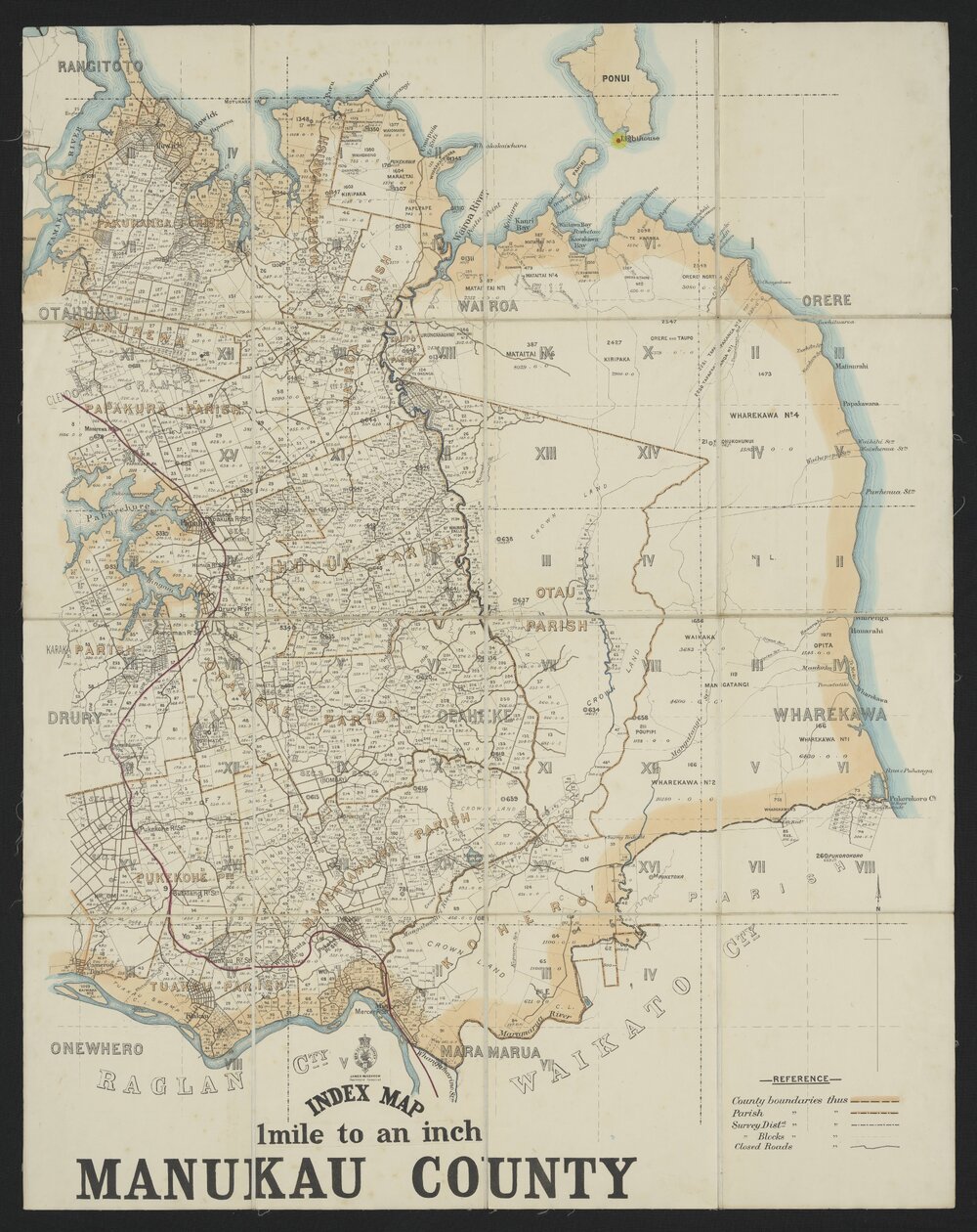 New Zealand General Survey Office, Index map of Manukau County (c. 1880s). Pae Korokī, accessed 10/04/2026, https://paekoroki.tauranga.govt.nz/nodes/view/116138