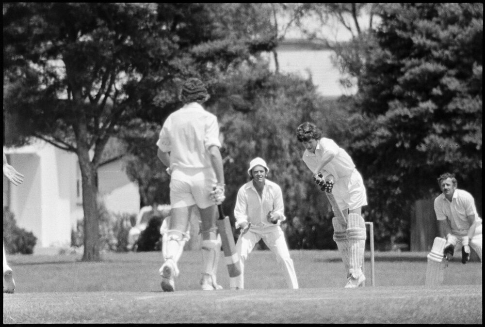 Date26 November 1975Reference Numberphoto gcc-37093DescriptionAlbion verses Greerton in cricket. Pictured are possibly Don Harvey, Graham Brown, Tony Wilson and Bob Hayes umpiring. Published 26 November 1975.FormatNegativePhysical Description35mm black-and-white negative (1/3)Photographer/CreatorBay of Plenty Times