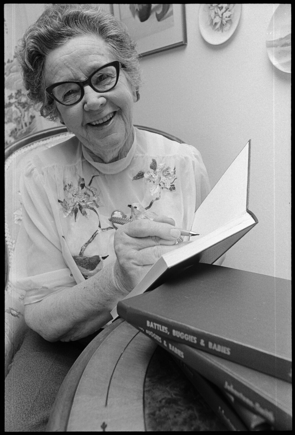 Date29 November 1975Reference Numberphoto gcc-37152DescriptionSophie Johnstone-Smith has written a book on New Zealand early settlers that has just been published. Published 29 November 1975.FormatNegativePhysical Description35mm black-and-white negative (2/5)Photographer/CreatorBay of Plenty Times